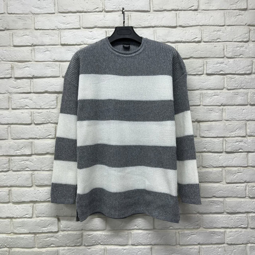 بافت وینگر ارجینال_ سفید با خطوط طوسی-یقه گرد