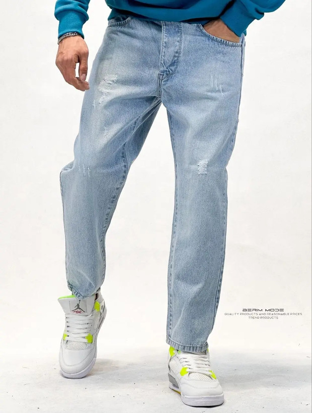 شلوار جین مام فیت مردانه اورجینال برند Turk آبی یخی