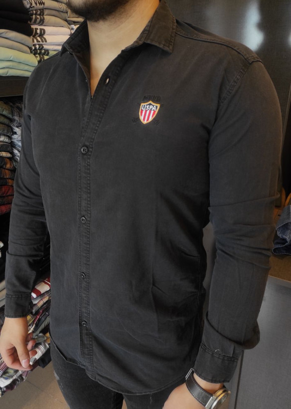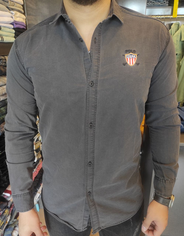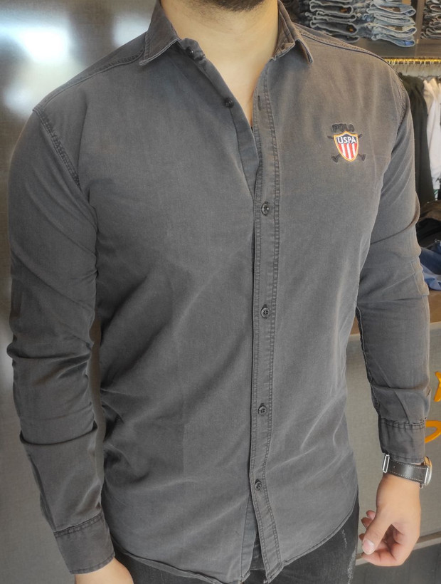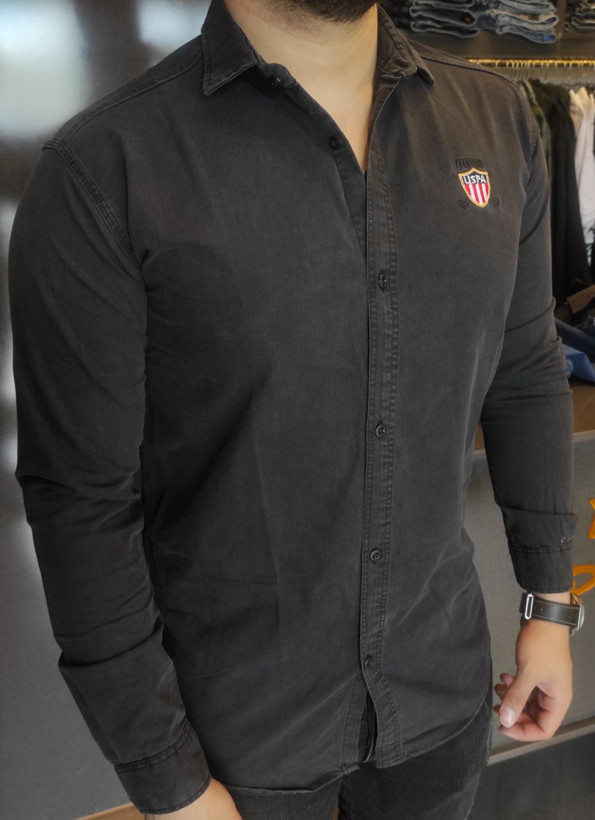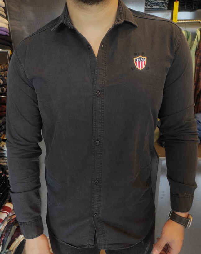 پیراهن لی آستین بلند مردانه بدون جیب ترک آبی و ذغالی