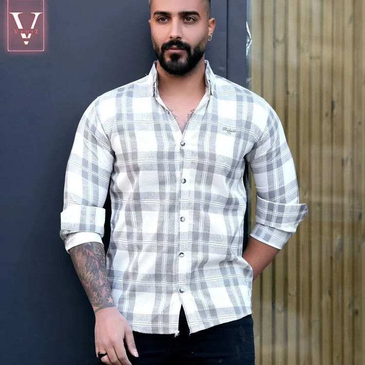 پیراهن چهارخانه مردانه آستین بلند تمام نخ (دوخت ترک)