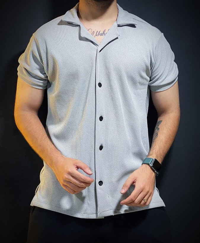 استایلسازی با پیراهن مراکشی بیسکوییتی برند مچینست آستین کوتاه مردانه - درجه یک 🎯