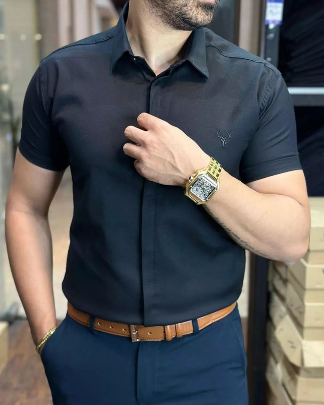 پیراهن نخ کش مشکی /بدون چروکی و آب رفت/رنگ ثابت/