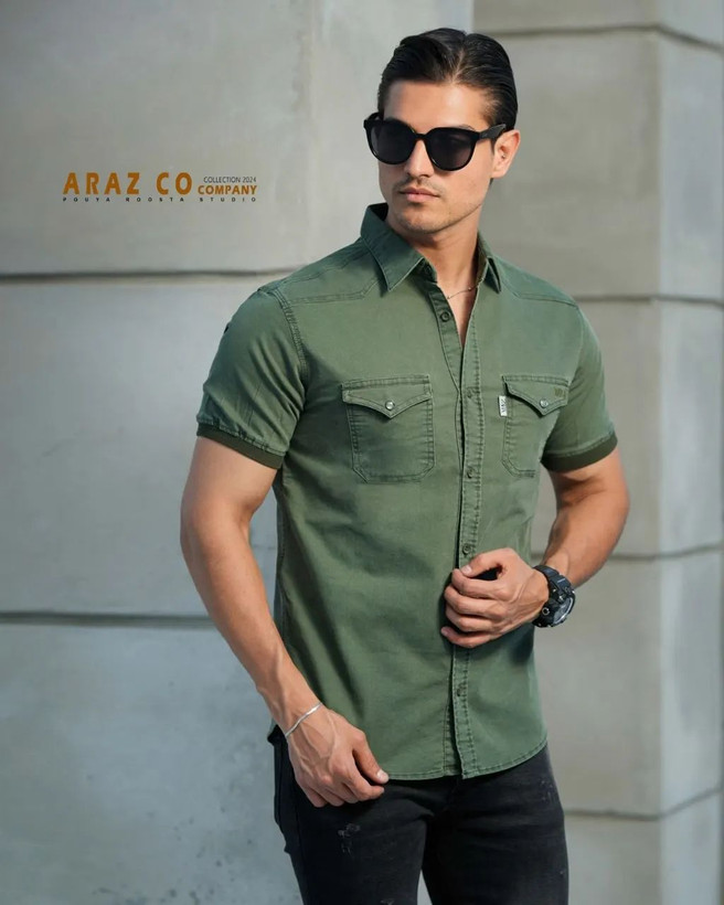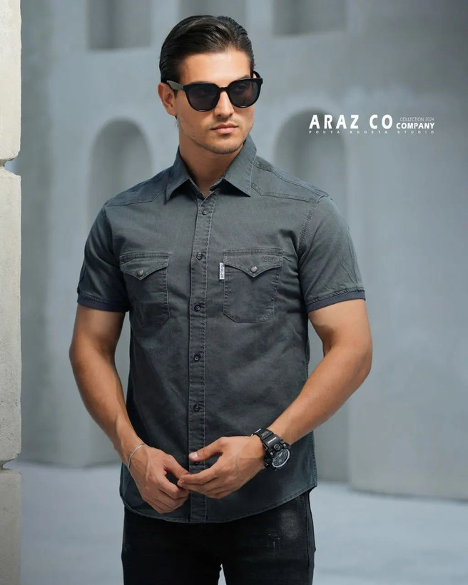 پیراهن کتان مردانه دوخت شرکت L CON -آستین کوتاه رنگبندی کامل