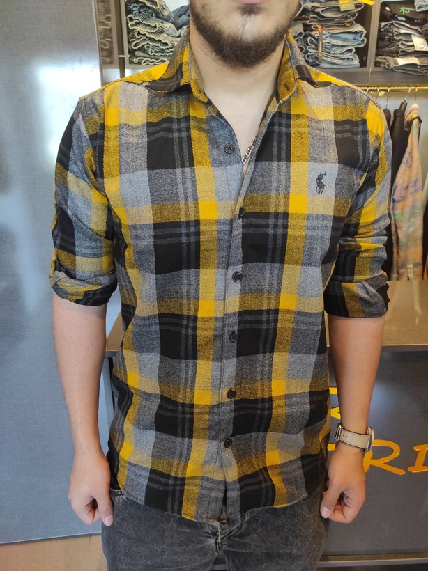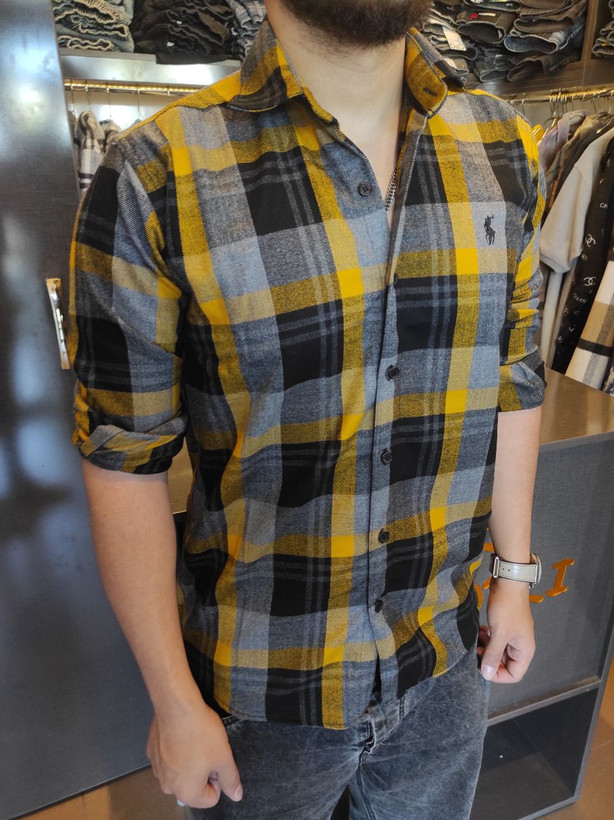 پیراهن پشمی مردانه اورجینال POLO زرد مدل چهارخانه