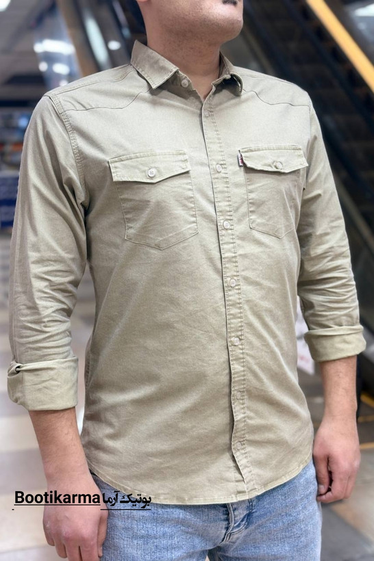 پیراهن کتان مردانه آستین بلند ساده دو جیب کرمی سبز دودی ذغالی اورجینال ترک