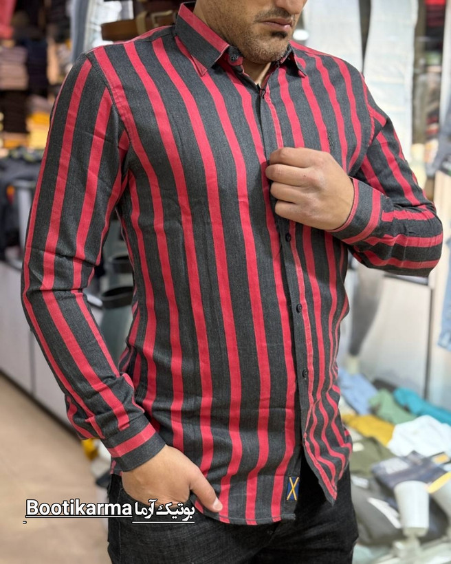 قرمز یکی از رنگهایی است که انرژی، جسارت و اعتمادبهنفس را القا میکند. این رنگ در کنار راهراههای منظم، جلوهای خاص و متمایز به تیپ شما میبخشد.