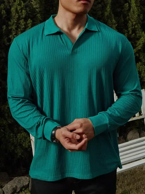 بلوز نیم یقه مراکشی مردانه اورجینال استایل اولد مانی old money -ارجینال (سبز رنگ)