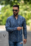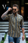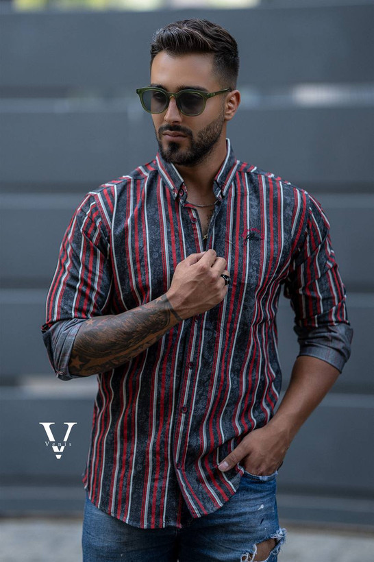 پیراهن آستین بلند دنیم راه راه کشی اندامی