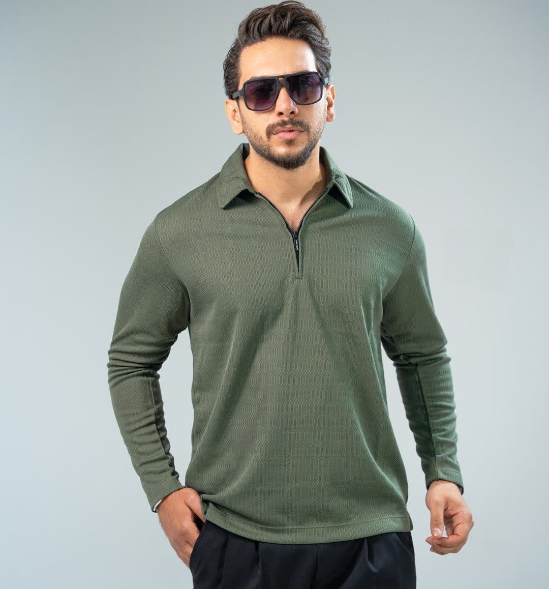 پیراهن مراکشی نیم زیپ استایل old mony رنگ سبز یشمی
